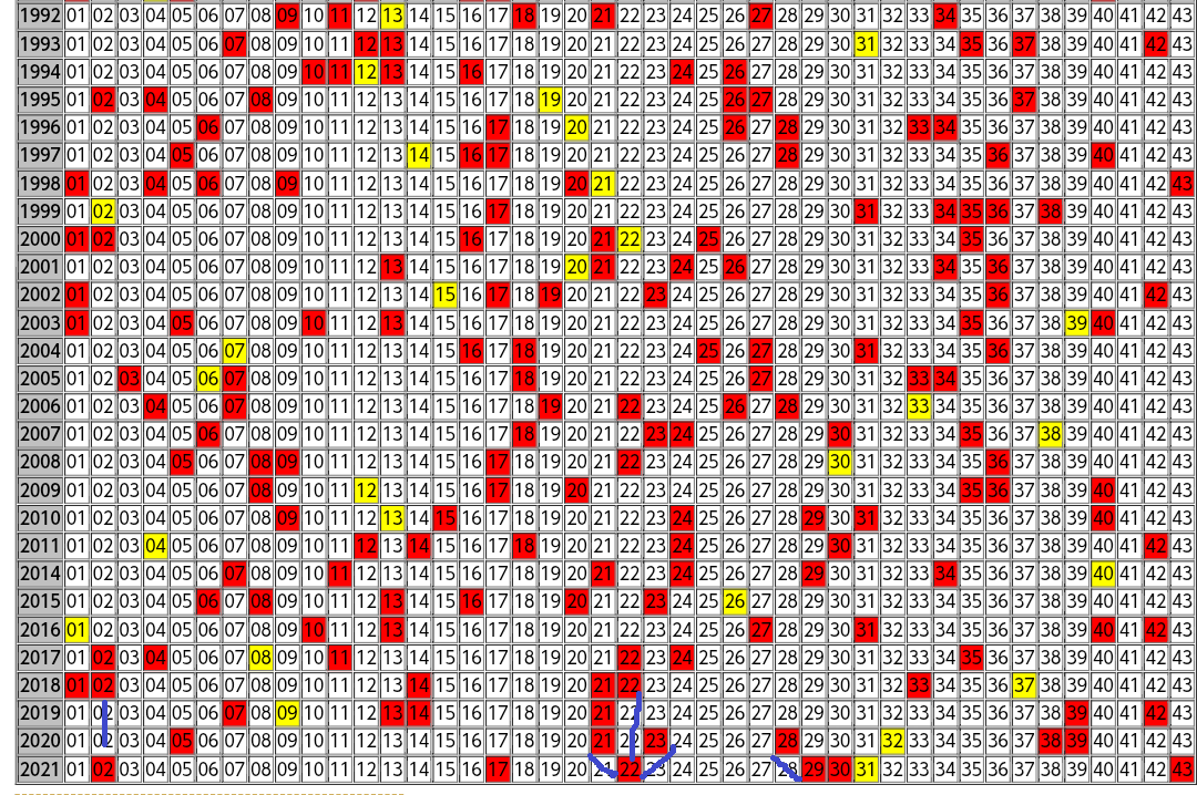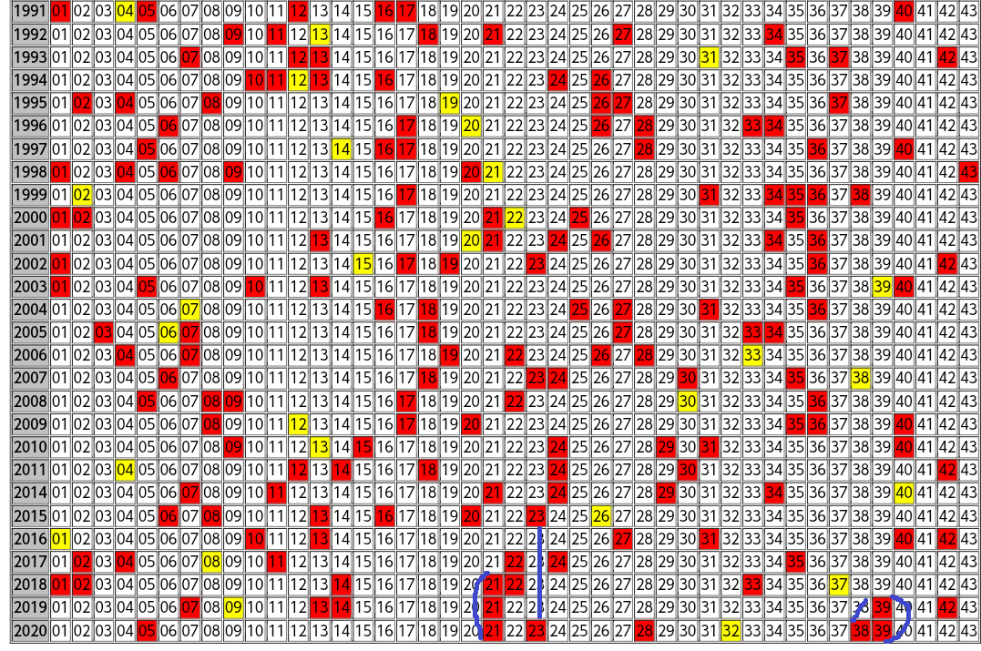 さて、2021回目のロト6の結果ですが、東京抽籤の出目表を見て、ちょっとだけ分析しておきます。