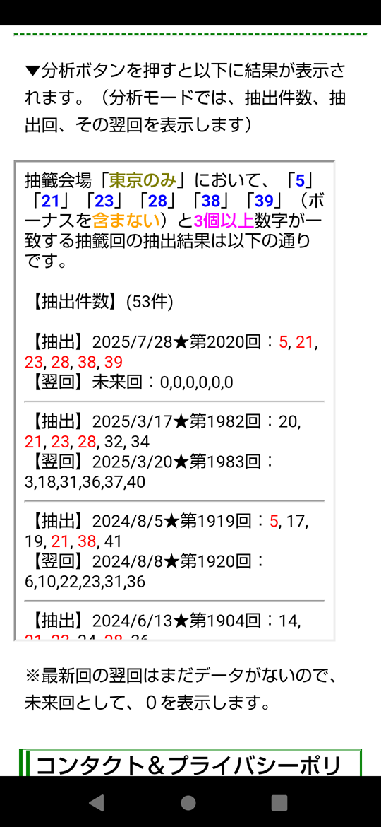 ※2025年6月30日(月)の第2012回と7月3日(木)の第2013回は大阪抽籤だったので、しばらくの間は、大阪抽籤の結果を除いた、東京抽籤のみの設定にしたほうがいいかもしれません。