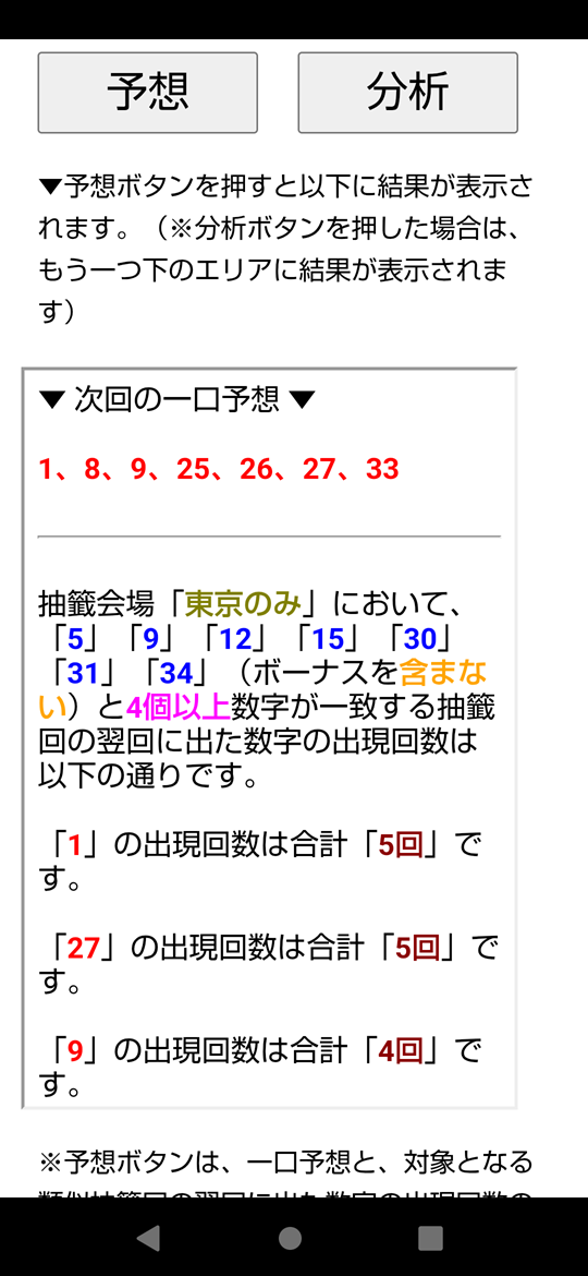 一口予想として、7個の数字を選ぶ際、同率7位の数字がいくつもある可能性もありますので、スクロールして詳細もご覧になってください。