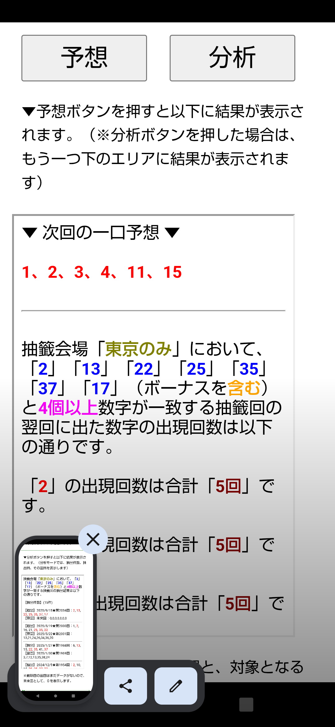 一口予想として、6個の数字を選ぶ際、同率6位の数字がいくつもある可能性もありますので、スクロールして詳細もご覧になってください。