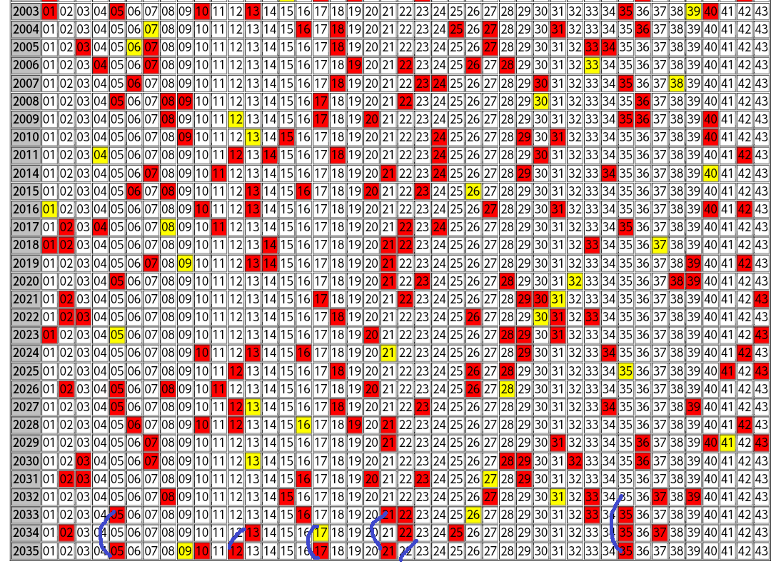 さて、2035回目のロト6の結果ですが、東京抽籤の出目表を見て、ちょっとだけ分析しておきます。