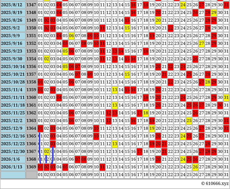 それでは、東京抽籤の出目表を見て、1369回目の傾向を解説しておきます。